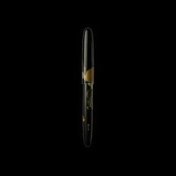 La pluma está fabricada en ebonita, un material cálido al tacto y altamente absorbente, ideal para técnicas de lacado tradicionales. Sobre ella se aplican múltiples capas de laca urushi, que otorgan un acabado brillante y duradero. El diseño se crea mediante la técnica Hira Maki-e, donde polvos de oro y plata se aplican sobre la laca fresca antes de ser pulidos, logrando un detalle excepcionalmente fino y resistente. El plumín es de oro macizo de 14 quilates, tamaño #10, asegurando una escritura suave y fluida.
